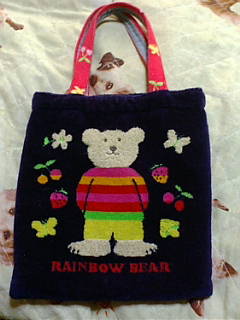 クマの絵柄のタオルでできた小さなバックで、口もファスナーもホックも何もなく、横にしたり逆さにしたら(わざと逆さにはしませんが)中身が落っこちても不思議じゃありません。バッグというのもおこがましいただの袋です。