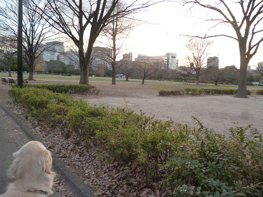 面会はほとんど毎日のように行っていて、いつもお留守番だとかわいそうなので、時々しんのすけを連れて病院周辺を散歩したりしてましたが、今回車で10分ほどの、江東区のドッグランがある「木場公園」へ行ってみました。