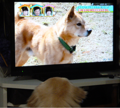 生まれて初めてテレビを見た時は、テレビの裏に回って「あれ、誰もいない・・・」と不思議そうにしてました。