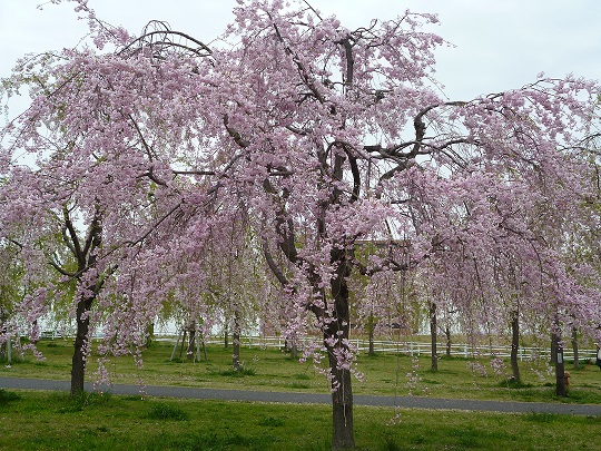 )公園のしだれ桜はまだ咲きほこっていました。