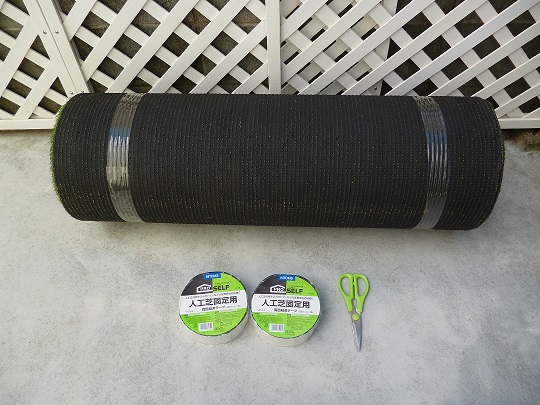 お蔭で足腰痛かったけど人工芝10mロールと人工芝用両面テープ15m用2個とで2万円でお釣りがきました