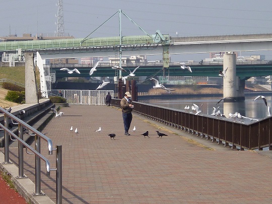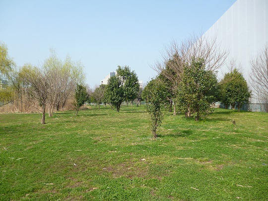 でも多摩川の土手のようにあまりのんびり遊ぶところはありません。