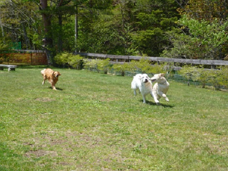 課長の時からのワン友のゴールデンのアビちゃん(4歳女の子)と一緒に行っています。