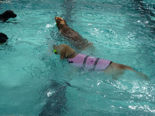 最初少し躊躇しましたが、無理やり水に入れたらボール取りたさに普通に犬かきしました!